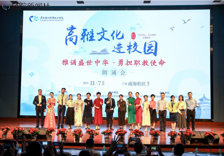11月7日,我校“雅诵盛世中华·勇担职教使命”主题教育朗诵会在南海校区图书馆报告厅举行。《大写的中国》《黄河入海流》《党费》等12个作品精彩纷呈,讴歌革命历史,颂扬奋斗精神。祖晴、卢吉雄、魏冬青、田奉丽等13位朗诵名家应邀来校倾情朗诵。副校长王玫瑰等出席活动。活动通过网络直播平台开放直播,吸引了近50万人参与观看。