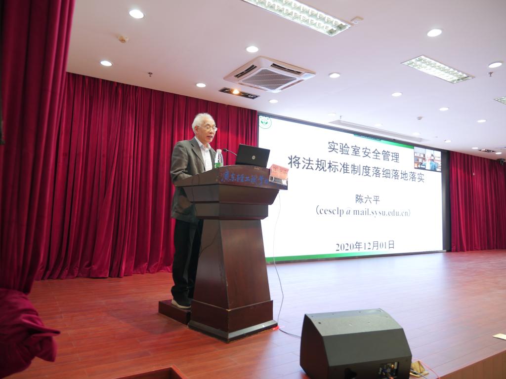 此次培训邀请了中山大学公共实验教学中心主任、广东省高校实验室安全建设与管理专家组成员陈六平教授,为大家作题为《实验室安全管理一一将法规、标准、制度落细、落地、落实》专题培训。培训从实验室安全管理的法律法规、如何对实验室进行安全管理、实验室管理的基础知识、中毒的自救和处理、制定处理事故应急预案等方面,重点讲解了“以人为本、安全第一”的实验室管理理念。此次培训内容详实、案例典型,讲解深刻,使大家认识到只有安全的态度才有安全的行为,只有安全的行为才有安全的习惯,只有安全的习惯才有安全实验室,改变为人的安全事故发生。