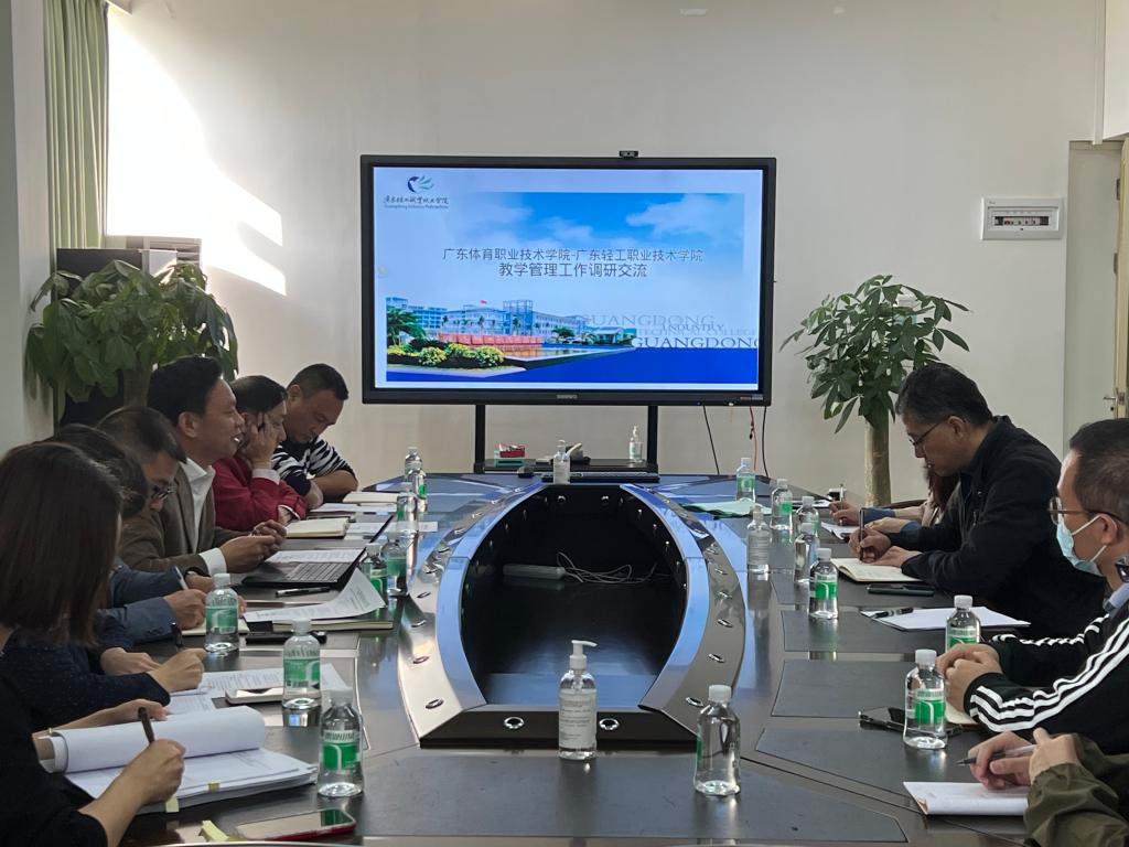 12月9日,广东体育职业技术学院教务部部长钱雪峰等一行5人到我校调研,教务部主任张宝昌、公共课教学部主任范智军等一行进行了接待。