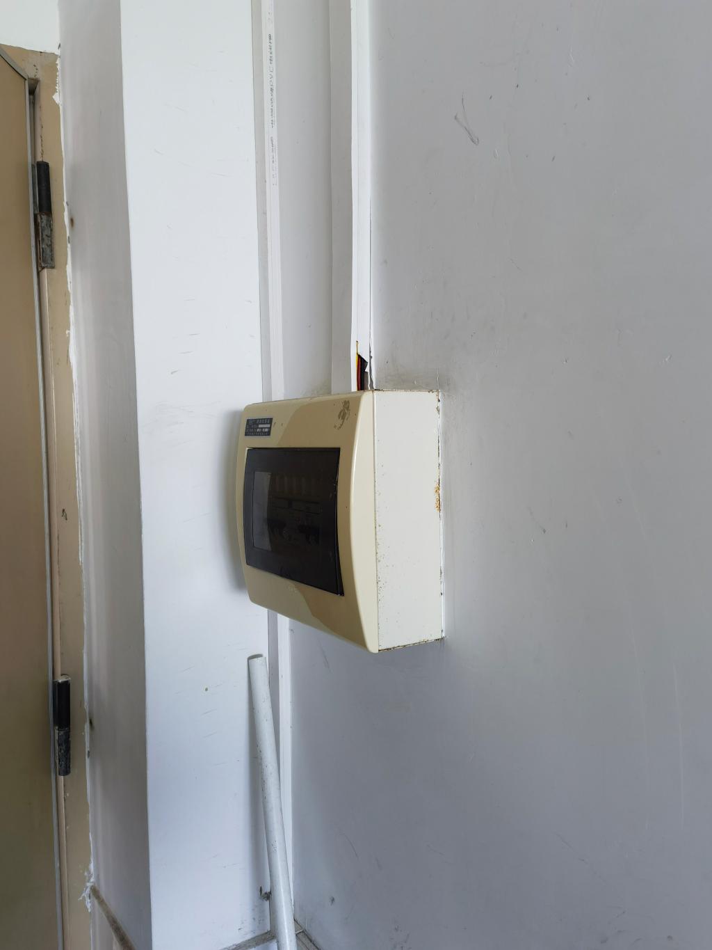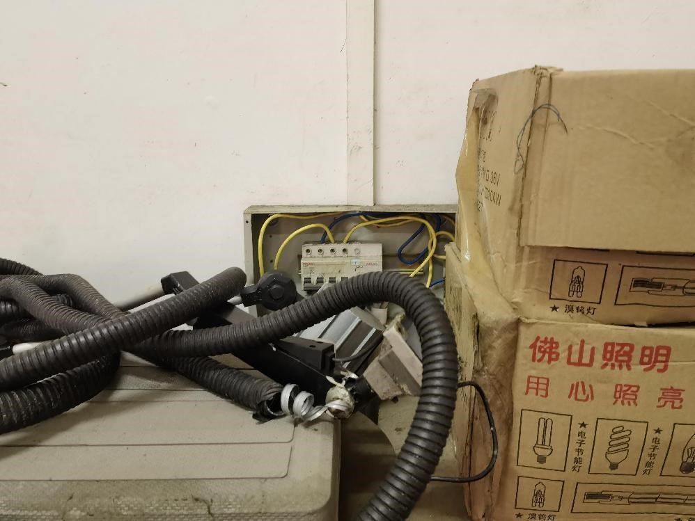 5.南海北区第四实训楼B506,电源总开关线盒盖板缺失。