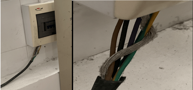 高分子精密仪器测试室 (南海北区第四实训楼A502),电线外漏,存在用电安全隐患。