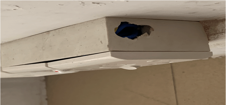2.生化分离实训室(5)(南海北区第三实训楼C413),电源插座破损,电线外漏,存在用电安全隐患。