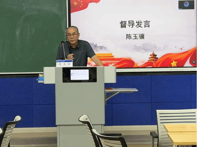 其后,学校教学督导组组长陈玉骥老师从课程思政素材挖掘、课堂教学学生评价、教学质量提升等多个角度,并结合自身对课程思政的研究,分享了他对开展课程思政“一个依据和两个结合”原则的认识,为教师们提供了宝贵的实践指导。