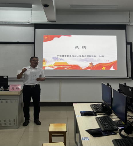 11月12日下午,教务部联合教师发展中心在南海校区(南区)1号楼教学楼419教室举办“课程思政”示范课程线下公开课。公开课由轻化工技术学院教师黎嘉智主讲校级“课程思政”示范课《融媒体版面设计》,学校相关专业教师、特别是南海校区工科学院部分教师参加,活动由教务部副主任刘刚主持。
