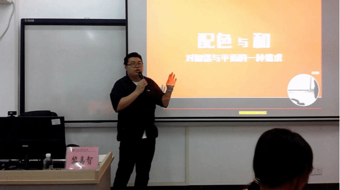 黎嘉智明确提出本次课程的核心任务——健康小镇Logo的配色设计。他从版面设计学习的循序渐进过程入手,特别注重传统文化的融入,详细介绍了中国传统文化中的色彩定义,引导学生们从文化角度理解色彩搭配的内涵,帮助学生们掌握工具与方法,逐步建立起个人设计尺度,并细化色彩感知与判断。通过“和”字理念的讲解,强调设计中的和谐与平衡,鼓励学生们在设计中找到个人定位,并将这一理念延伸至社会责任感和历史使命感的培养上。在分组教学过程中,他围绕生态健康主题展开色彩搭配,通过实践探索设计的奥秘,强调色彩搭配与生态健康主题巧妙融合,引导学生们深入理解设计的精髓。