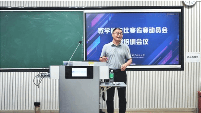 6月3日下午,教务部在新港校区教学楼智慧课室211举办“2025年教学能力比赛省赛动员暨专题培训会”。学校省赛备赛团队成员共40余人参加培训,教学能力比赛国赛一等奖负责人吴东盛作培训讲座,汕头职业技术学院教务处处长曹丽娟特邀出席。会议由教务部副主任刘刚主持。