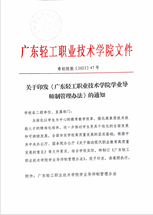关于印发《广东轻工职业技术学院学业导师制管理办法》的通知