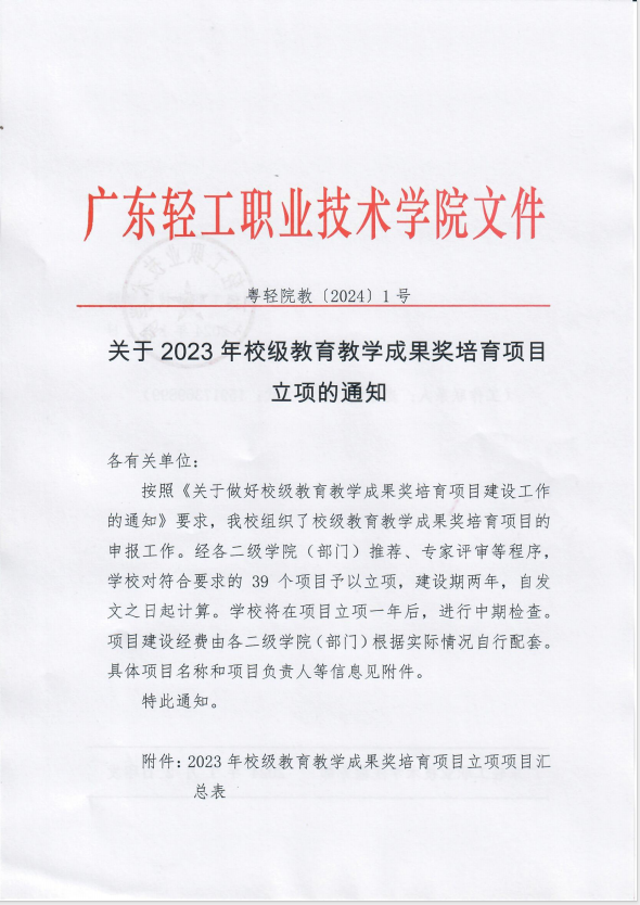 关于2023年校级教育教学成果奖培育项目立项的通知(粤轻院教〔2024〕1号).pdf
